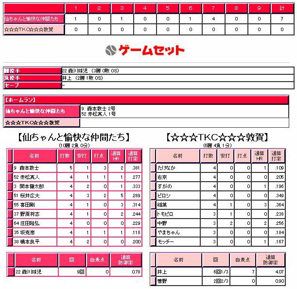 サマーシーズン2007成績